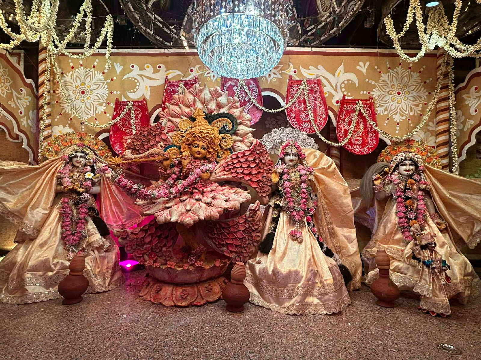 Now, over the years, when I met Guru Mahārāja, in the few years I was with him, which was about ten years, I saw him inaugurate the Govardhana temple, which, if you have been there, is a proper palace. Every wall is hand-carved. The temple hall is adorned with art. Everything is handmade, decorated, so many rooms, dioramas, all the avatāras, all the pastimes of Kṛṣṇa-līlā. The altar is the size of our temple room in Govardhana.