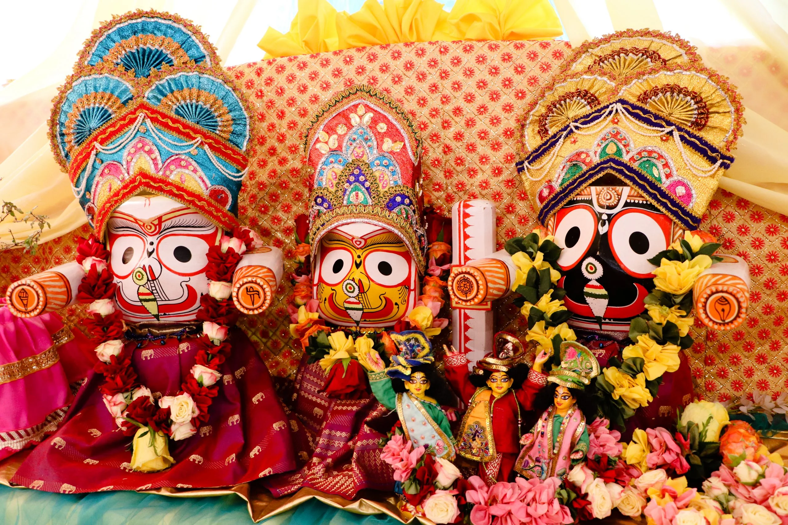 From left: Sri Advaita Acarya, Sri Nityananda Prabhu, Sri Gauranga Mahaprabhu, Sri Gadadhara Pandita, Sri Srivasa Thakura.