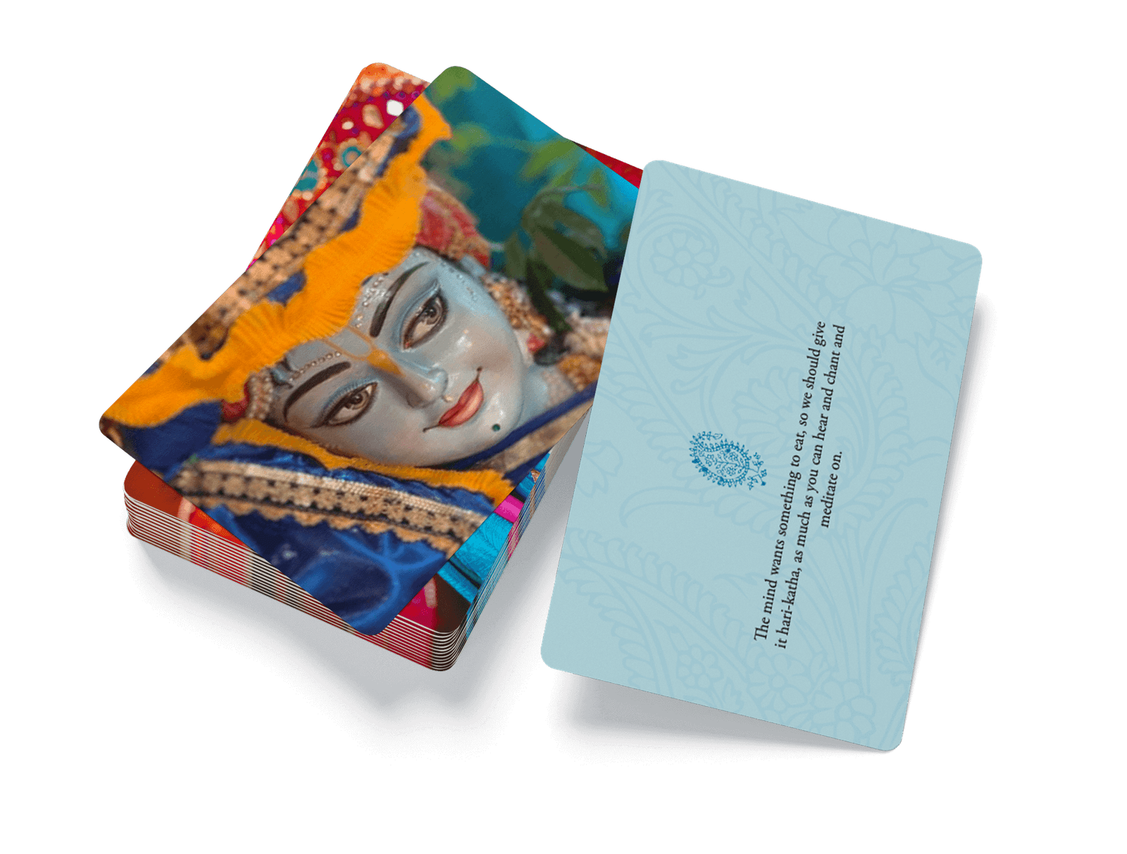 Original 108 cards with images of Madhuri Kunj deities and daily inspirational quotes from spiritual guides. To place an order contact us.